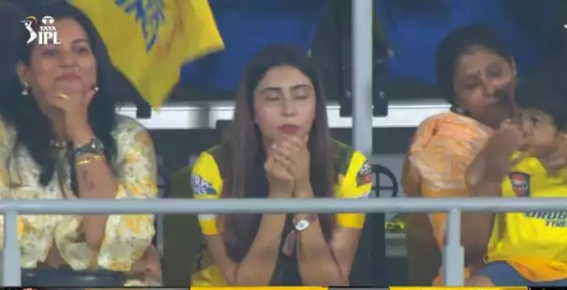 જ્યારે ચેન્નાઈની બીજી વિકેટ 11મી ઓવરના પ્રથમ બોલ પર અજિંક્ય રહાણેના રૂપમાં પડી ત્યારે શિવમ દુબે 104 રનનો સ્કોર વધારવા મેદાનમાં ઉતર્યો હતો. ડાબોડી બેટ્સમેન આવતાની સાથે જ તેણે સ્પિનર ​​સાઈ કિશરને પ્રથમ બોલ પર લોંગ ઓન પર લાંબી સિક્સર ફટકારી હતી.આ દરમિયાન સ્ટેન્ડ પર બેઠેલી અંજુમ ખાન તરફ કેમેરાનું ફોકસ થતાં જ તે તેના પતિ શિવમ દુબે માટે પ્રાર્થના કરતી જોવા મળી હતી. શિવમ દુબેએ સતત બીજી સિક્સ ફટકારી ત્યારે પ્રાર્થનાઓ કામ કરી રહી હતી. આ વખતે મિડ-વિકેટ પર બાઉન્ડ્રી.
