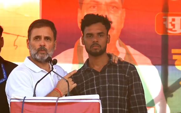 કોંગ્રેસ નેતા રાહુલ ગાંધી મંચ પરથી જનમેદનીને સંબોધી રહ્યા હતા ત્યારે રેલીની વચ્ચે એક યુવક ઊભો થયો, જેને રાહુલ ગાંધીએ મંચ પર બોલાવ્યો. યુવક સ્ટેજ પર ચઢતાની સાથે જ રાહુલ ગાંધીએ તેને ગળે લગાવી દીધો હતો. વિકાસ કુમાર નામનો આ યુવક પોતાને અગ્નિવીર કહે છે, જેનું કહેવું છે કે તેને આ સ્કીમ બિલકુલ પસંદ નથી આવી.