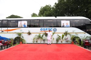 રાજ્યના વાહન વ્યવહાર રાજ્યમંત્રી હર્ષ સંઘવીએ ગાંધીનગર બસ સ્ટેશન ખાતેથી નાગરિકોની પરિવહન સેવામાં ૨૦ નવીન હાઈટેક વોલ્વો બસોને ફ્લેગ ઓફ આપી પ્રસ્થાન કરાવ્યું હતું. તેમણે નાગરિકોની સુરક્ષાને લગતી સુવિધાઓનું જાત નિરીક્ષણ કરી માહિતી મેળવી હતી.
