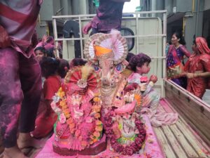 સાતમા દિવસે સત્યનારાયણની કથા યોજી મહાઆરતી કરી સમી સાંજે બાપ્પાને ધામધૂમ પૂર્વક અગલે બરસ તું જલ્દી આના નાદ સાથે વિદાય આપવામાં આવી હતી..