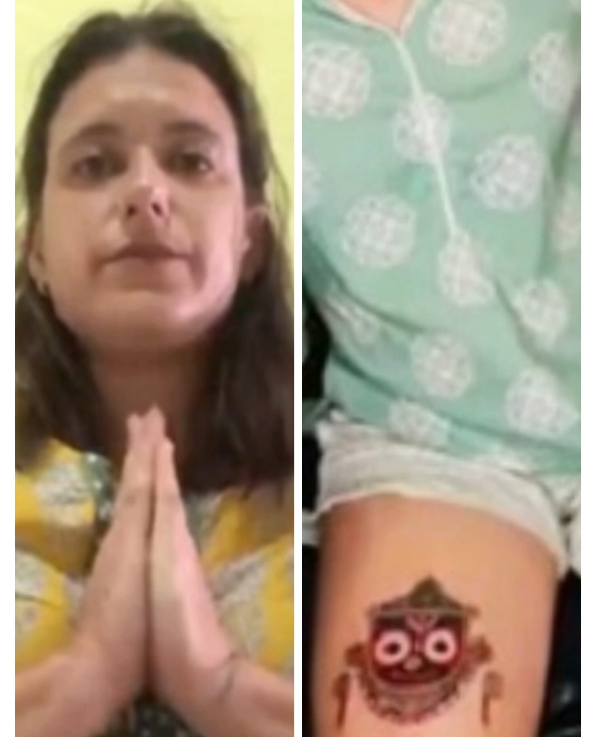 મહિલાએ વીડિયોમાં હાથ જોડીને કહ્યું, ‘હું ભગવાન જગન્નાથનું અપમાન કરવા માંગતી નહોતી.’ હું ભગવાન જગન્નાથનો સાચો ભક્ત છું અને હું દરરોજ મંદિરમાં જાઉં છું. મેં ભૂલ કરી છે અને મને તેના માટે ખૂબ જ દુઃખ છે. મેં કલાકારને ટેટૂ એવી જગ્યાએ મૂકવા કહ્યું જ્યાં તે છુપાયેલ હોય. હું કોઈ મુદ્દો ઊભો કરવા માંગતો ન હતો. મને આનો ખૂબ જ દુ:ખ છે. ટેટૂ કરેલો વિસ્તાર સાજો થઈ જશે કે તરત જ હું તેને કાઢી નાખીશ. મારી ભૂલ માટે મને માફ કરો.’ ટેટૂ દુકાનના માલિકે કહ્યું કે તે મહિલા તેની દુકાનમાં ભગવાન જગન્નાથનું ટેટૂ તેની જાંઘ પર કરાવવા આવી હતી.