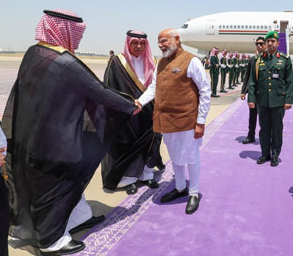 સાઉદી અરેબિયાના ક્રાઉન પ્રિન્સ મોહમ્મદ બિન સલમાનના આમંત્રણ પર વડાપ્રધાન નરેન્દ્ર મોદી 22 એપ્રિલેથી બે દિવસની ઐતિહાસિક મુલાકાત પર જેદ્દાહ પહોંચ્યા છે.જયાં એરપોર્ટ પર તેમનું ભવ્ય સ્વાગત કરવામાં આવ્યું હતુ..આ તેમની સાઉદી અરેબિયાની ત્રીજી મુલાકાત નથી.. પરંતુ ભારત-સાઉદી સંબંધોનું ઐતિહાસિક કેન્દ્ર રહેલા જેદ્દાહ શહેરની મુલાકાત લેવાની તેમની પહેલી વાર પણ છે. આ મુલાકાત દરમિયાન ઓછામાં ઓછા 6 મહત્વપૂર્ણ MoU પર હસ્તાક્ષર થવાની અપેક્ષા છે.