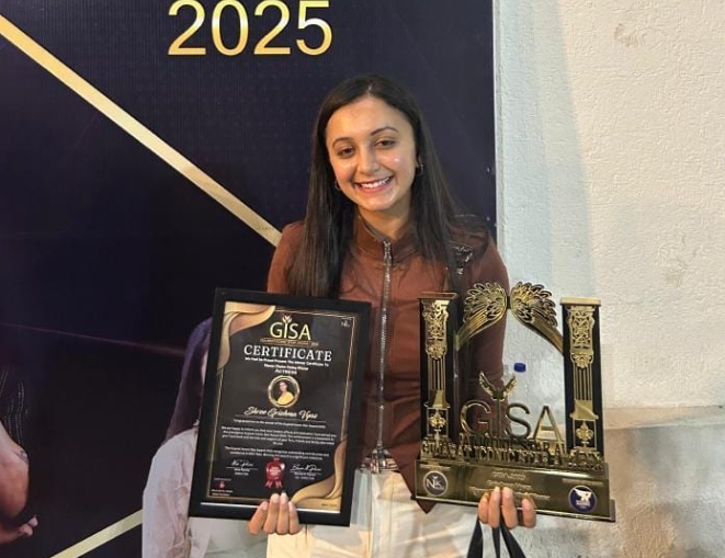 દેશની સુરક્ષા હોય કે અંતરિક્ષની વાત, ફાયર ફાઈટિંગનું ક્ષેત્ર હોય કે પછી ફિલ્મ જગત,અત્યારે દરેક ક્ષેત્રમાં નારી એટલે કે સ્ત્રીઓ આગળ વધી ગઈ છે. ત્યારે અમદાવાદની વધુ એક છોકરીએ પોતાનું સાથે પરિવારનું નામ રોશન કર્યું…અમદાવાદની ગ્રીષ્મા વ્યાસને આઇકોનિક સ્ટાર એવોર્ડ 2025 મળ્યો છે..આ એવોર્ડ ફંકશન અમદાવાદ ખાતે યોજવામાં આવ્યો હતો..