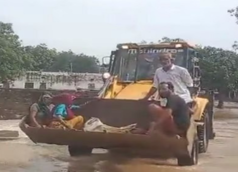 રાજસ્થાનના બુંદી જિલ્લામાંથી એક ગર્ભવતી મહિલાને જેસીબીમાં હોસ્પિટલ લઈ જવામાં આવી રહી હોવાનો ચોંકાવનારો વીડિયો સામે આવ્યો છે. એમ્બ્યુલન્સમાં હોસ્પિટલ ન લઈ જવાનું કારણ ભારે વરસાદને કારણે રસ્તાઓ પર પાણી ભરાઈ ગયા હોવાનું જણાવાયું છે. કહેવામાં આવ્યું છે કે બુંદી જિલ્લામાં ભારે વરસાદને કારણે કનક સાગરમાં પાણી ભરાઈ ગયું છે. જેને કારણે રસ્તાઓ પાણીમાં ડૂબી ગયા છે.લોકોની અવરજવર મુશ્કેલ બની ગઇ છે.