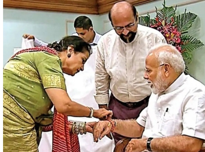 એક અહેવાલ મુજબ, પીએમ મોદીની દત્તક બહેન કમર મોહસીન શેખે આ વખતે બે રાખડીઓ તૈયાર કરી છે. આમાં ઓમ અને ભગવાન ગણેશના ચિત્રો છે. હાલમાં, તે પીએમઓ તરફથી ગ્રીન સિગ્નલની રાહ જોઈ રહી છે. શેખનો જન્મ પાકિસ્તાનના કરાચીમાં થયો હતો, પરંતુ તે 1981માં લગ્ન પછી ભારત આવી હતી.