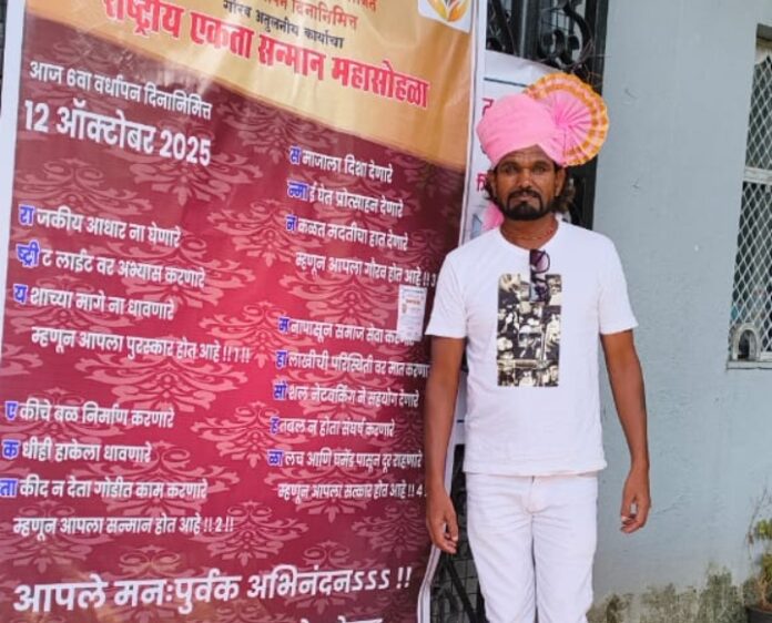 એક્શન અભિનેતા ગુલાબ સલાટને લોક ગૌરવ રાષ્ટ્રીય એકતા પરિષદ તરફથી અભિનંદન પત્ર, રાષ્ટ્રીય એકતા માનદ મહાસોલા, રાજ્ય સ્તરીય જાહેર સેવા ગૌરવ પુરસ્કાર સહિત પુરસ્કારો પ્રાપ્ત થયા છે. માનનીય ગુલાબ સલાટ, એક એક્શન અભિનેતા, અભિનય અને અભિનય કલા ક્ષેત્રે પ્રતિષ્ઠિત પુરસ્કારથી સન્માનિત કરવામાં આવ્યા છે. તારીખ: 12 ઓક્ટોબર, 2025, વાશી, નવી મુંબઈ. નાસિર ખાન સર, સલમા ખાન મેડમનો ખાસ આભાર.