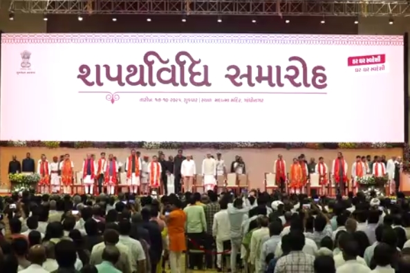 ગુજરાત : નવા મંત્રીમંડળનો શપથગ્રહણ સમારોહ, હર્ષ સંઘવી નાયબ મુખ્યપ્રધાન બન્યા