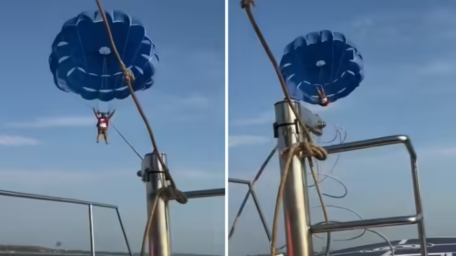 📍Goa: On March 29, a parasailing cable snapped during the activity, leading to a frightening incident. The video raises concerns about safety standards in adventure sports. pic.twitter.com/9t0Gn2GLe6
